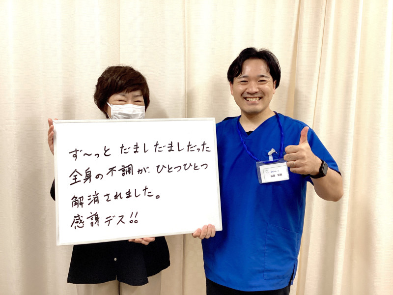 股関節に痛みが出たのは今年に入ってからですが仕事をしていると突然右の股関節に鋭い痛みが出てきまして、そこから足を引きずってでも歩けないような状態が今年になってから何回かありました。腰の方も中腰になることがあるのですが、その体勢でいると少し苦しくなって一回背伸びをしないとダメで仕事が続けられないという時は時々ありました。腰は3年前くらいに酷い痛みがあったので整形外科に行ったときがありましたがレントゲン撮ったり痛み止めを処方してもらって終わってしまいまして、そこからは時々痛みがありましたが通院しないで様子をみてみました。股関節も常にずっと痛いわけではなかったので痛い時は歩き方を自分で抑えながら歩いているような状況で騙し騙しきてたっていうところでした。4~5回施術を受けて終わったあとは凄く体が軽いような感じがしました。 (50代女性 仙台市宮城野区) ※効果には個人差があります |